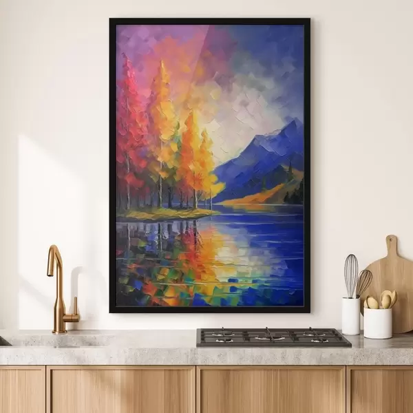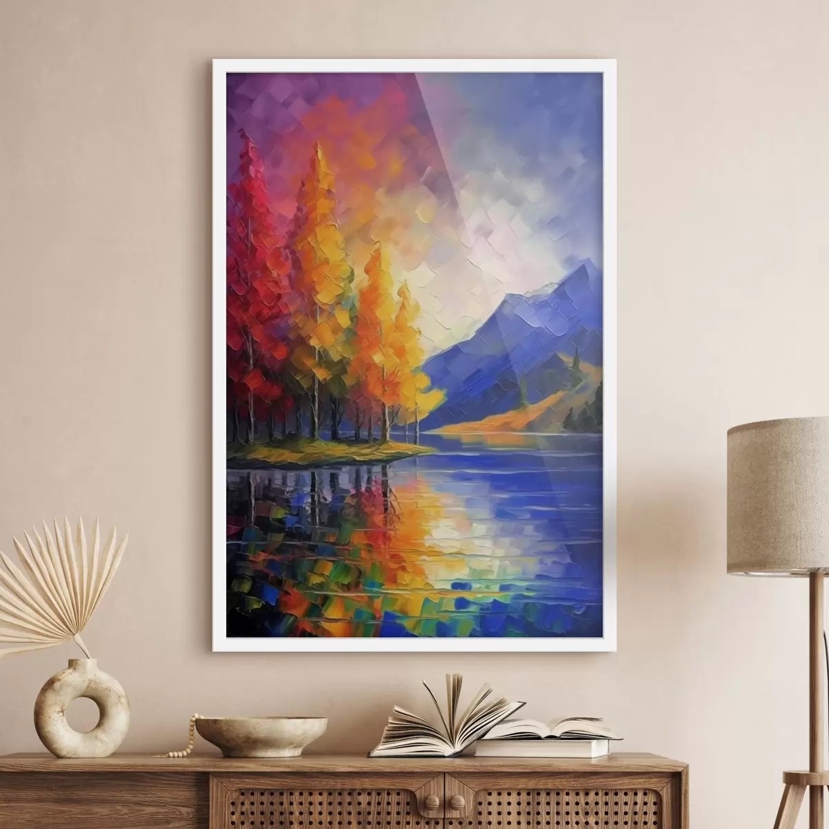 Plakatas Rudens kraštovaizdis su ežeru ir kalnais f42661