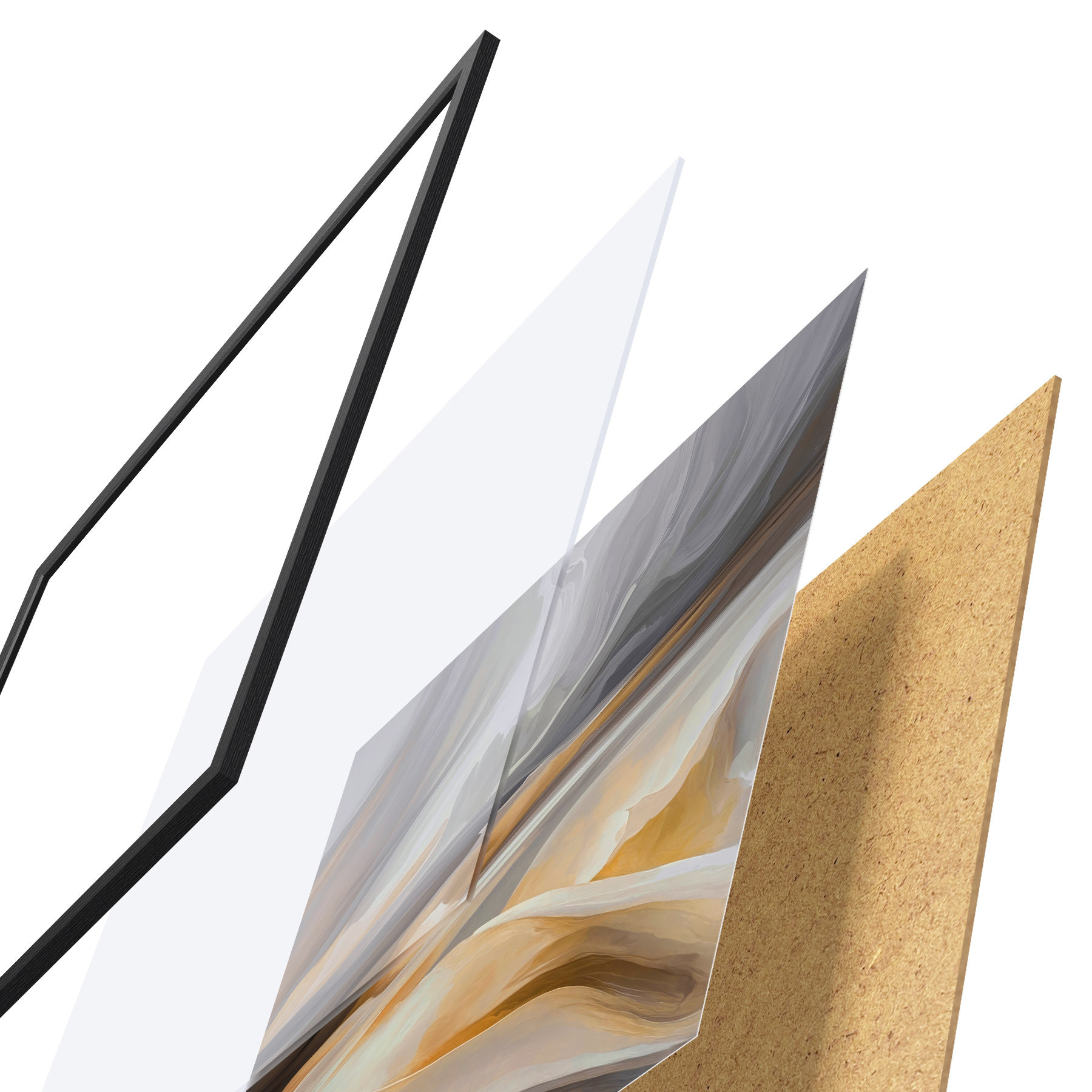 Plakatą sudaro rėmas, pleksiklas, atspausdintas vaizdas ir medžio drožlių plokštės pagrindas. Plakatą galima iš karto pakabinti ant sienos dėl kitoje pusėje esančių laikiklių.