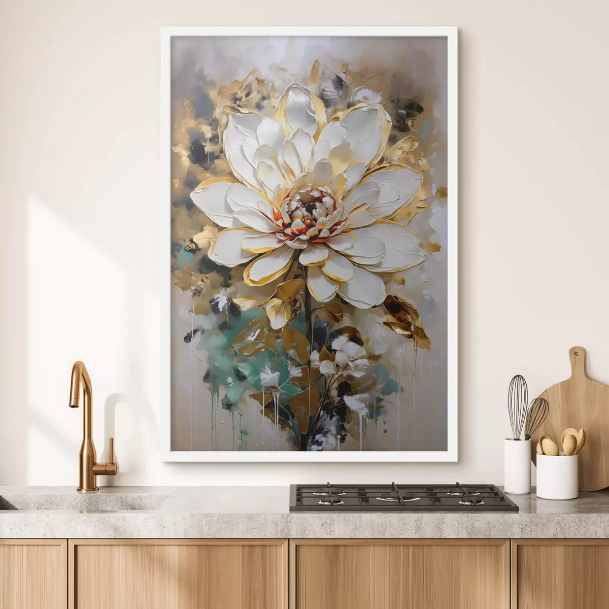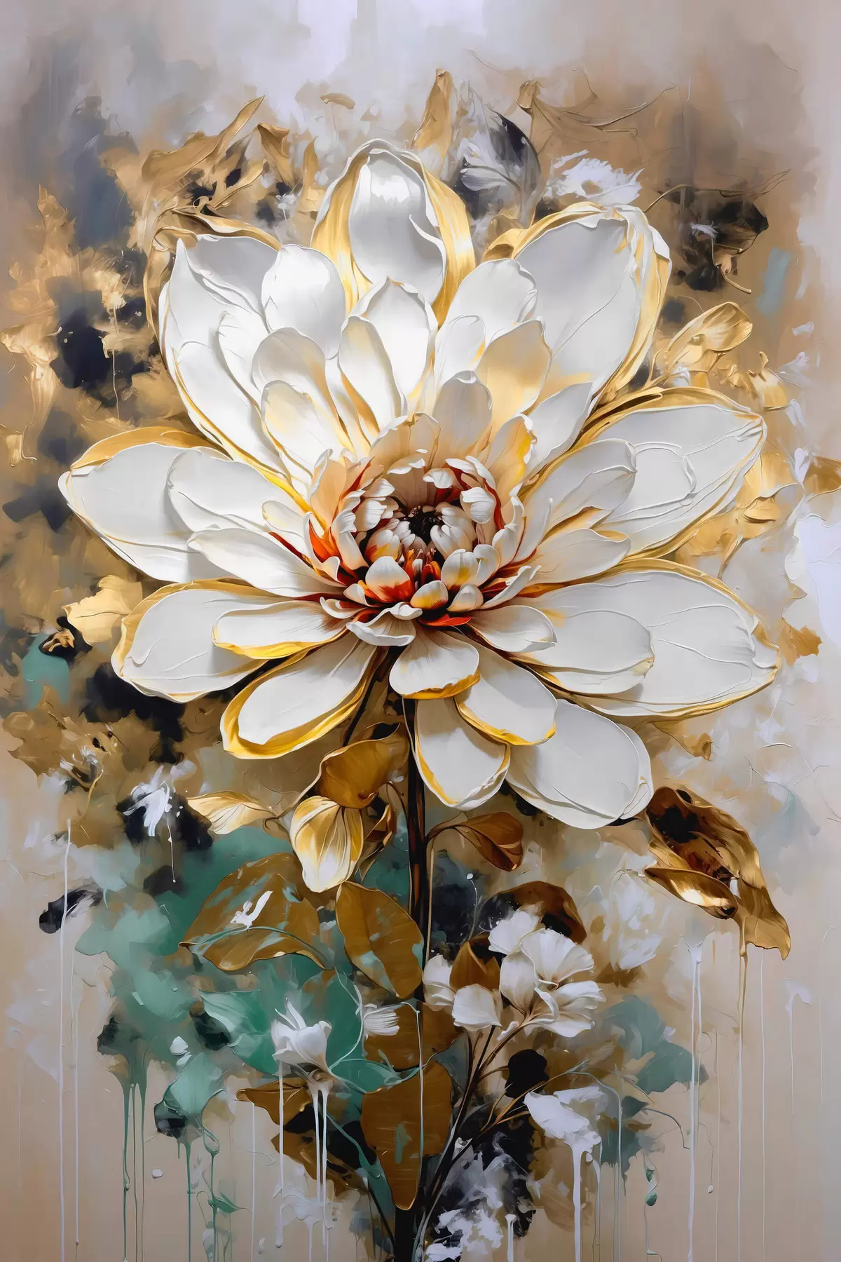 Plakatas Abstrakti gėlė su dažų imitacijos purslais fone Ne f42707