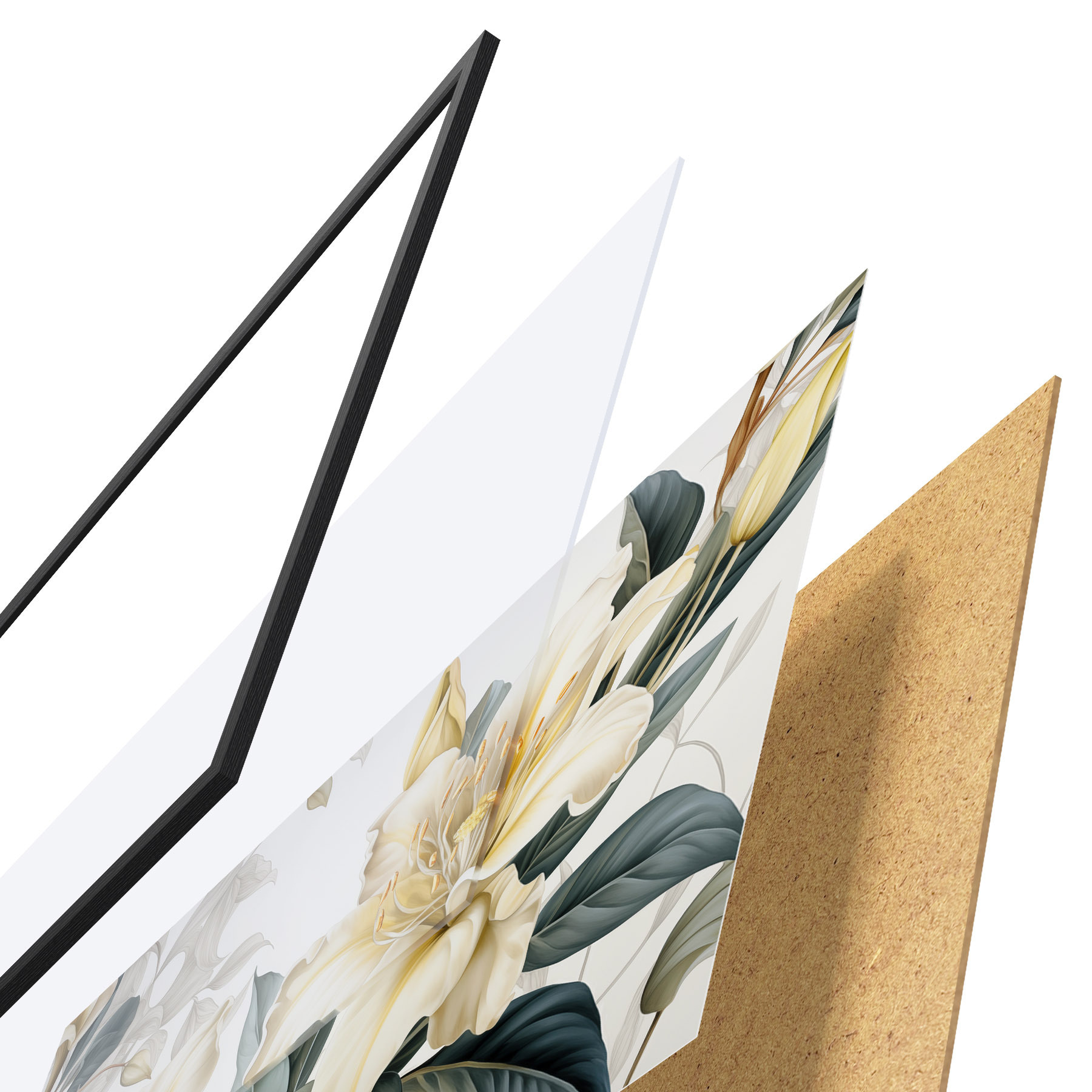 Plakatą sudaro rėmas, pleksiklas, atspausdintas vaizdas ir medžio drožlių plokštės pagrindas. Plakatą galima iš karto pakabinti ant sienos dėl kitoje pusėje esančių laikiklių.
