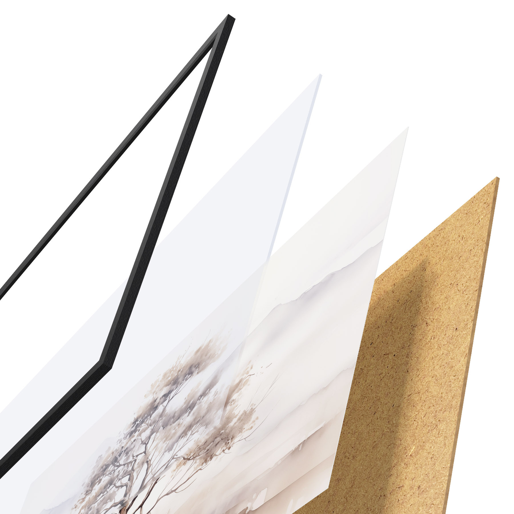 Plakatą sudaro rėmas, pleksiklas, atspausdintas vaizdas ir medžio drožlių plokštės pagrindas. Plakatą galima iš karto pakabinti ant sienos dėl kitoje pusėje esančių laikiklių.