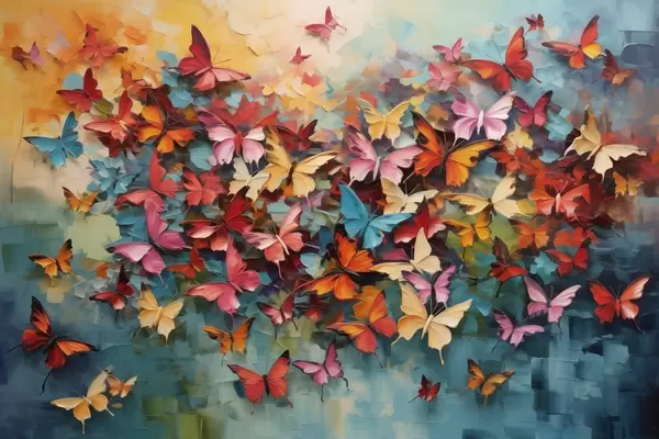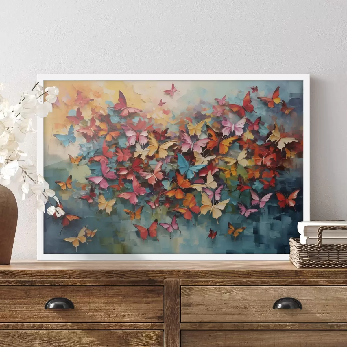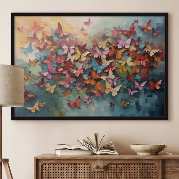 Plakatas Įvairiaspalvių aliejinės tapybos imitaciją imituojančių drugelių masyvas f42728