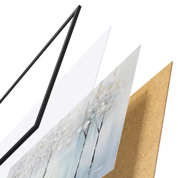 Plakatą sudaro rėmas, pleksiklas, atspausdintas vaizdas ir medžio drožlių plokštės pagrindas. Plakatą galima iš karto pakabinti ant sienos dėl kitoje pusėje esančių laikiklių.