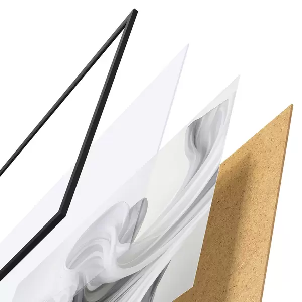 Plakatą sudaro rėmas, pleksiklas, atspausdintas vaizdas ir medžio drožlių plokštės pagrindas. Plakatą galima iš karto pakabinti ant sienos dėl kitoje pusėje esančių laikiklių.