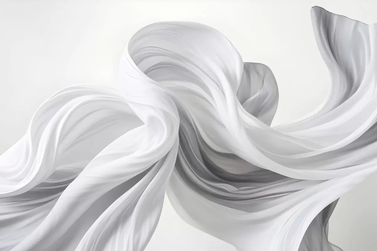 Plakatas Šviesiame fone besisukančios ir susipinančios baltos ir pilkos spalvos audinio formos Ne f42732
