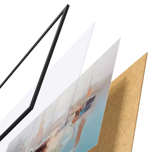 Plakatą sudaro rėmas, pleksiklas, atspausdintas vaizdas ir medžio drožlių plokštės pagrindas. Plakatą galima iš karto pakabinti ant sienos dėl kitoje pusėje esančių laikiklių.