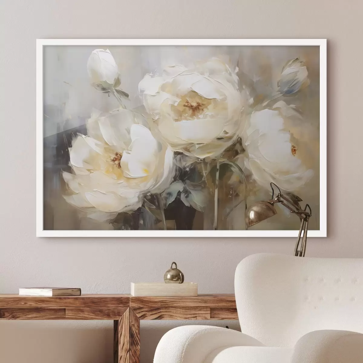 Plakatas Baltų bijūnų imitacijos tapyba Ne f42752