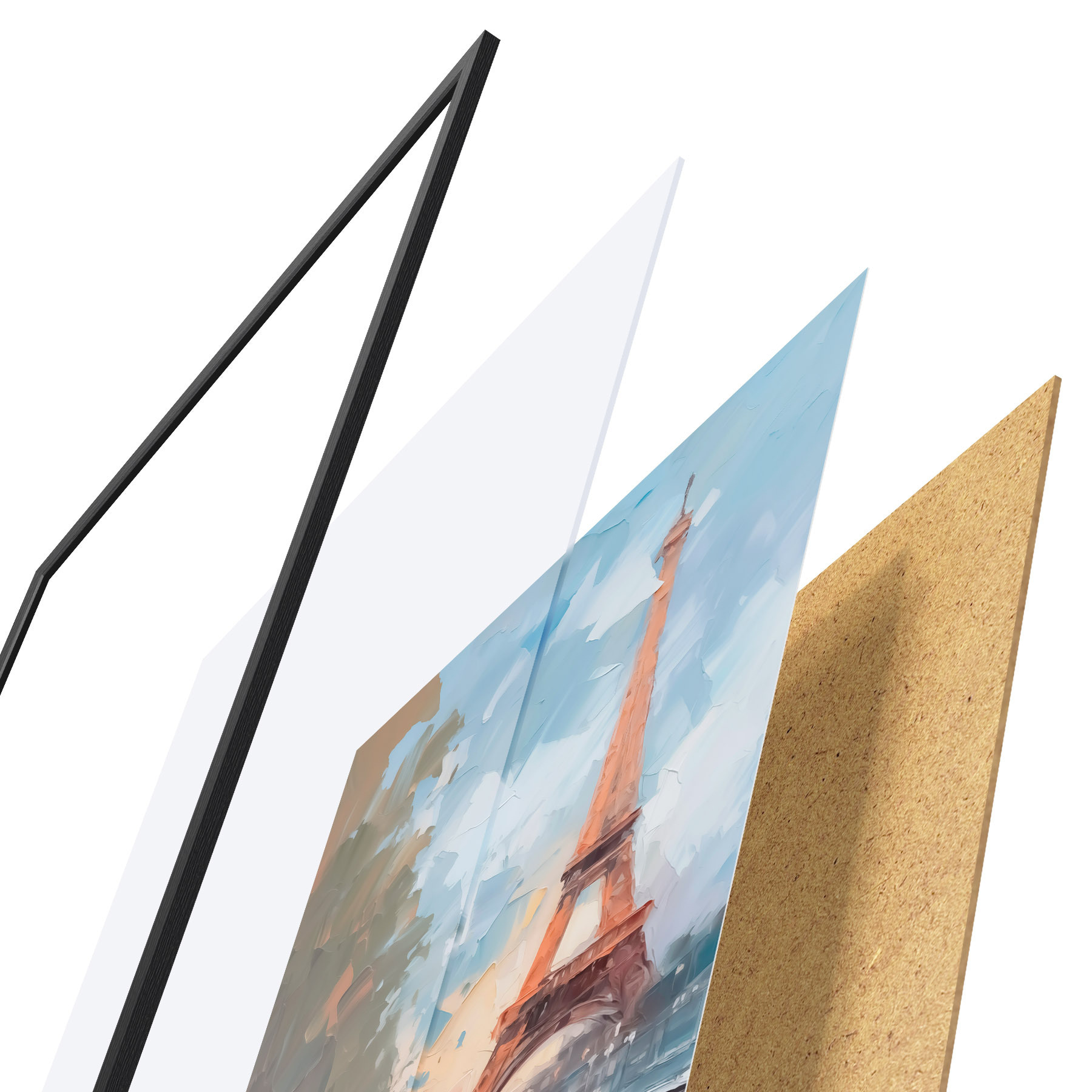Plakatą sudaro rėmas, pleksiklas, atspausdintas vaizdas ir medžio drožlių plokštės pagrindas. Plakatą galima iš karto pakabinti ant sienos dėl kitoje pusėje esančių laikiklių.
