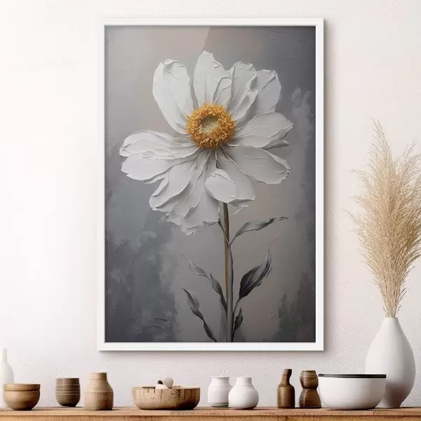 Plakatas Ramunėlės ant baltos nugarėlės, rastos aliejinės tapybos stiliumi f42758