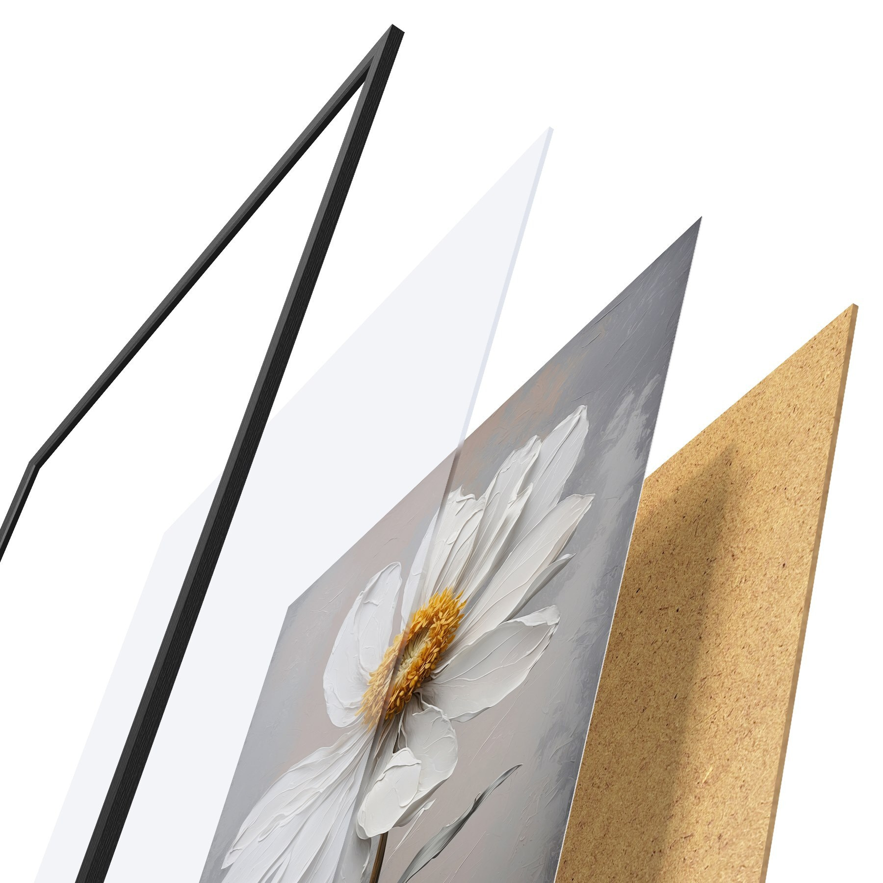 Plakatą sudaro rėmas, pleksiklas, atspausdintas vaizdas ir medžio drožlių plokštės pagrindas. Plakatą galima iš karto pakabinti ant sienos dėl kitoje pusėje esančių laikiklių.