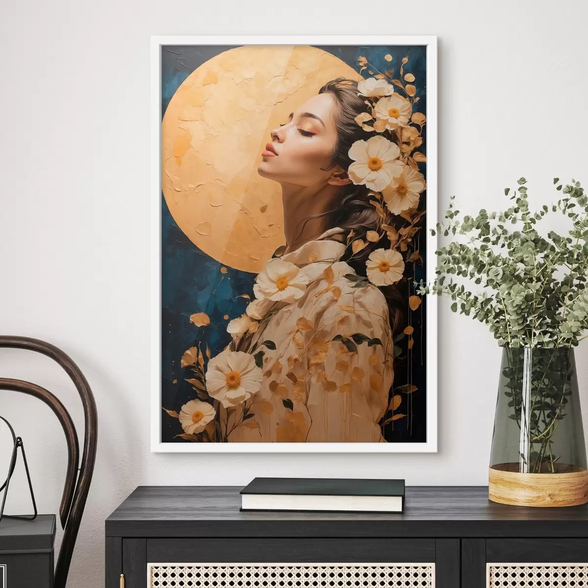 Plakatas Gifl su floweff ant auksinio mėnulio nugarėlės f42774