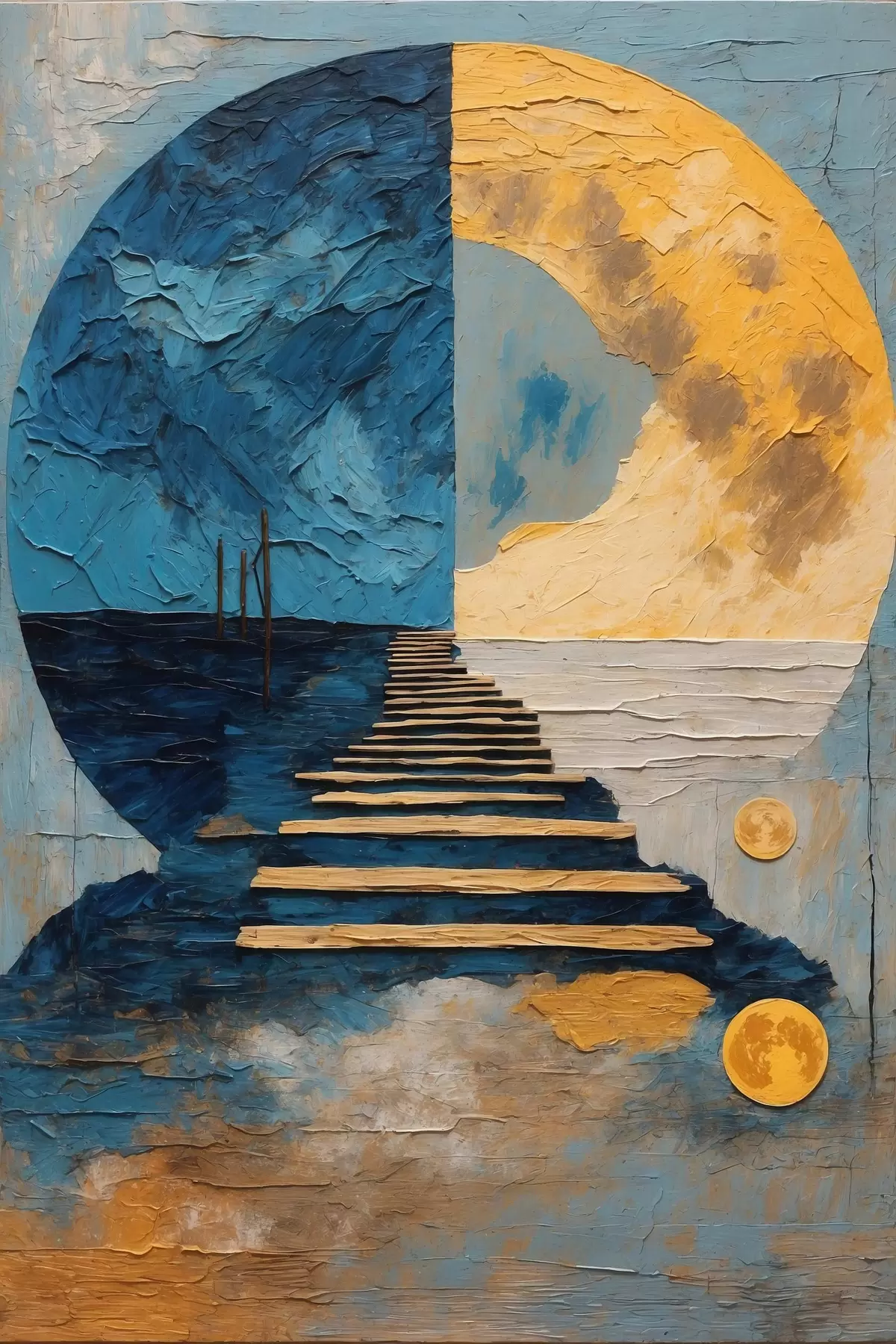 Plakatas Kelias į du mėnulio fafef aliejinės tapybos stiliumi Ne f42776