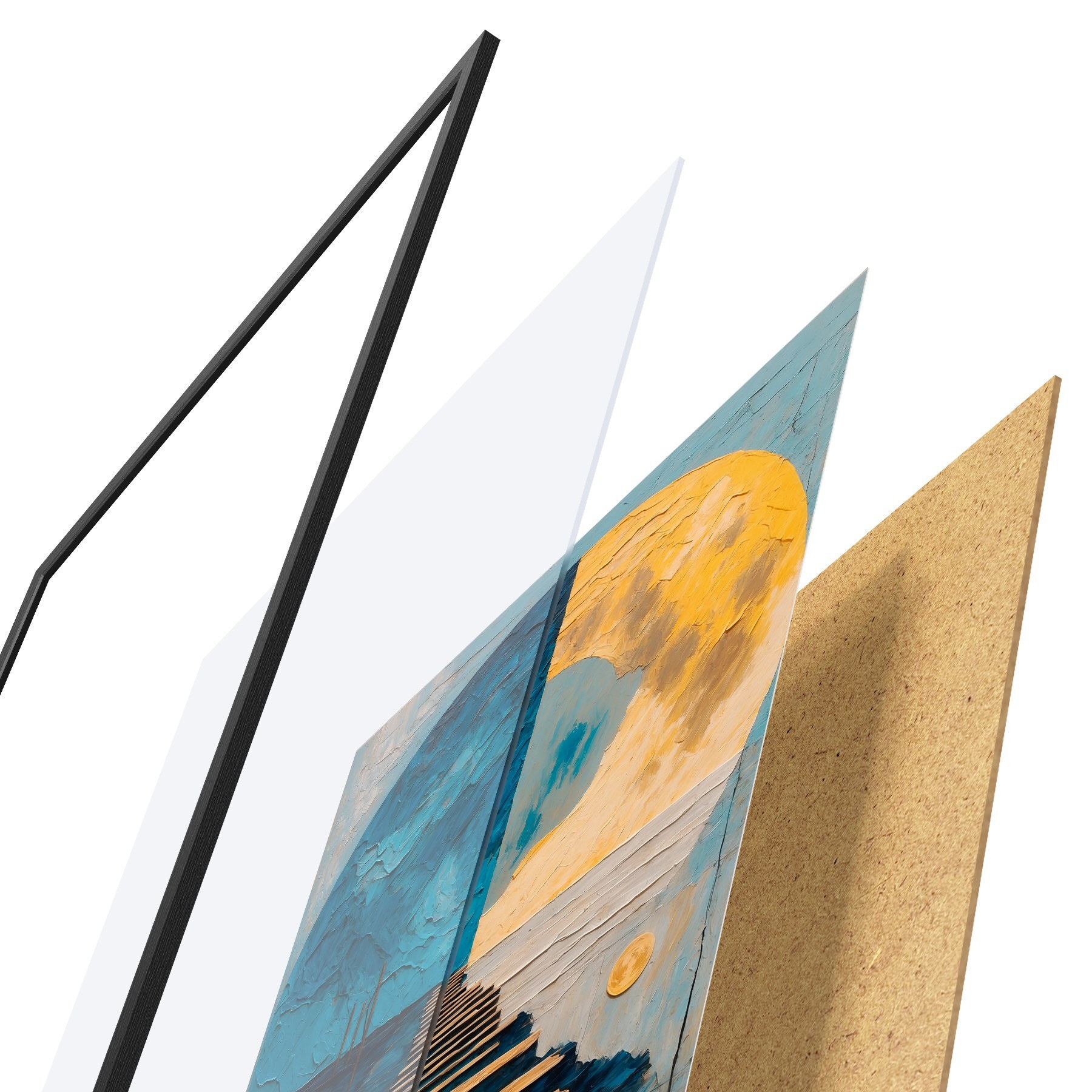 Plakatą sudaro rėmas, pleksiklas, atspausdintas vaizdas ir medžio drožlių plokštės pagrindas. Plakatą galima iš karto pakabinti ant sienos dėl kitoje pusėje esančių laikiklių.