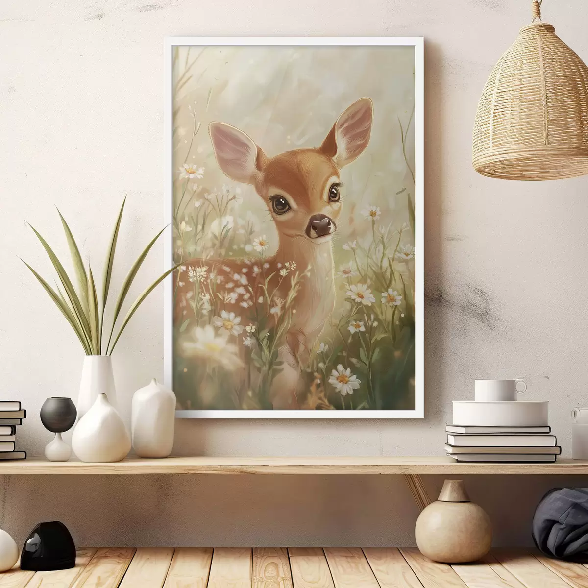 Plakatas Mielas elnias pievoje su margais žiedais, piešinys aliejiniais dažais Ne f42780