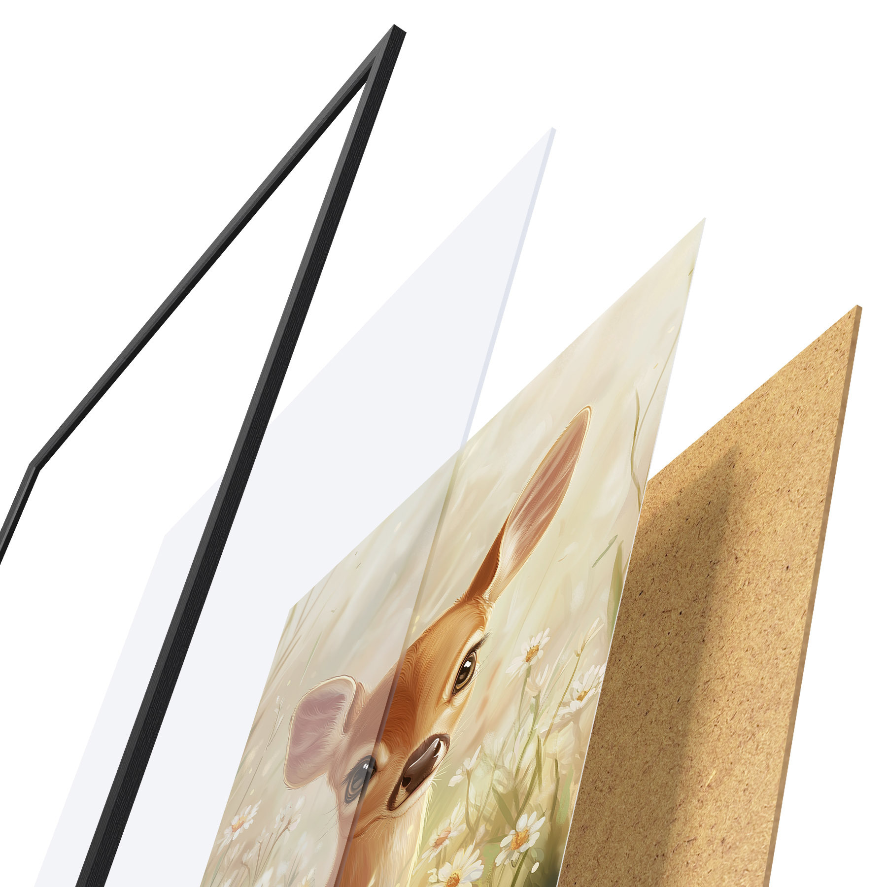 Plakatą sudaro rėmas, pleksiklas, atspausdintas vaizdas ir medžio drožlių plokštės pagrindas. Plakatą galima iš karto pakabinti ant sienos dėl kitoje pusėje esančių laikiklių.