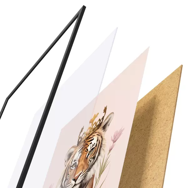 Plakatą sudaro rėmas, pleksiklas, atspausdintas vaizdas ir medžio drožlių plokštės pagrindas. Plakatą galima iš karto pakabinti ant sienos dėl kitoje pusėje esančių laikiklių.