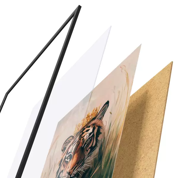 Plakatą sudaro rėmas, pleksiklas, atspausdintas vaizdas ir medžio drožlių plokštės pagrindas. Plakatą galima iš karto pakabinti ant sienos dėl kitoje pusėje esančių laikiklių.