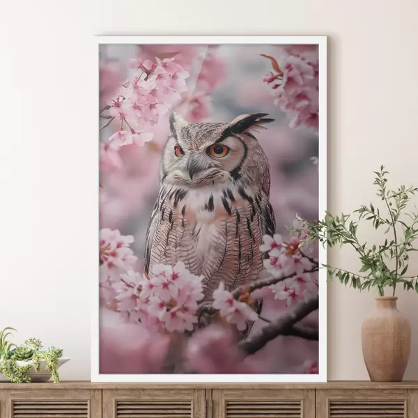 Plakatas Graži pelėda ant vyšnios šakos, gamta, realizmas f42784