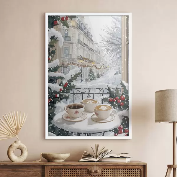 Plakatas Žiemos estetika, kavos puodeliai, restoranas, miesto gatvė Ne f42794