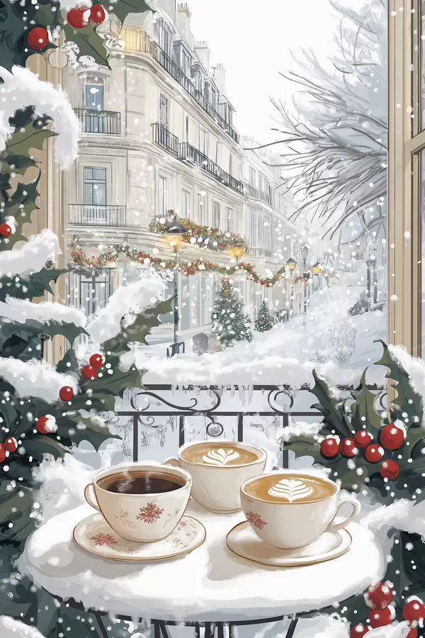 Plakatas Žiemos estetika, kavos puodeliai, restoranas, miesto gatvė Ne f42794