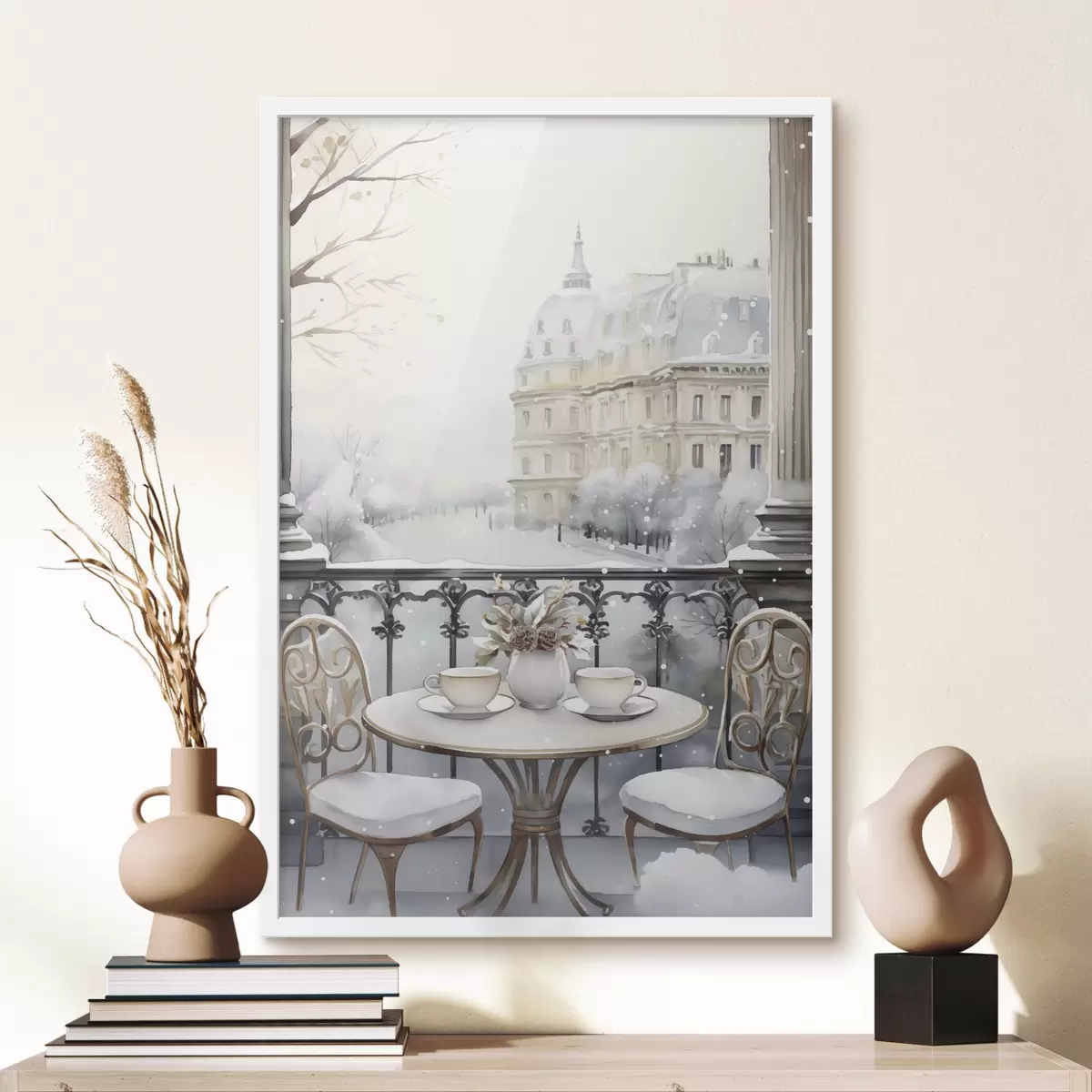 Plakatas Graži kavinė, arbatos puodeliai, bohemiškas stilius, akvarelė, žiemos estetika Ne f42796