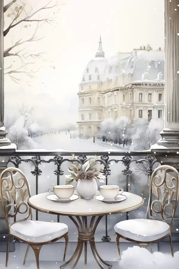 Plakatas Graži kavinė, arbatos puodeliai, bohemiškas stilius, akvarelė, žiemos estetika Ne f42796