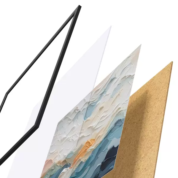 Plakatą sudaro rėmas, pleksiklas, atspausdintas vaizdas ir medžio drožlių plokštės pagrindas. Plakatą galima iš karto pakabinti ant sienos dėl kitoje pusėje esančių laikiklių.