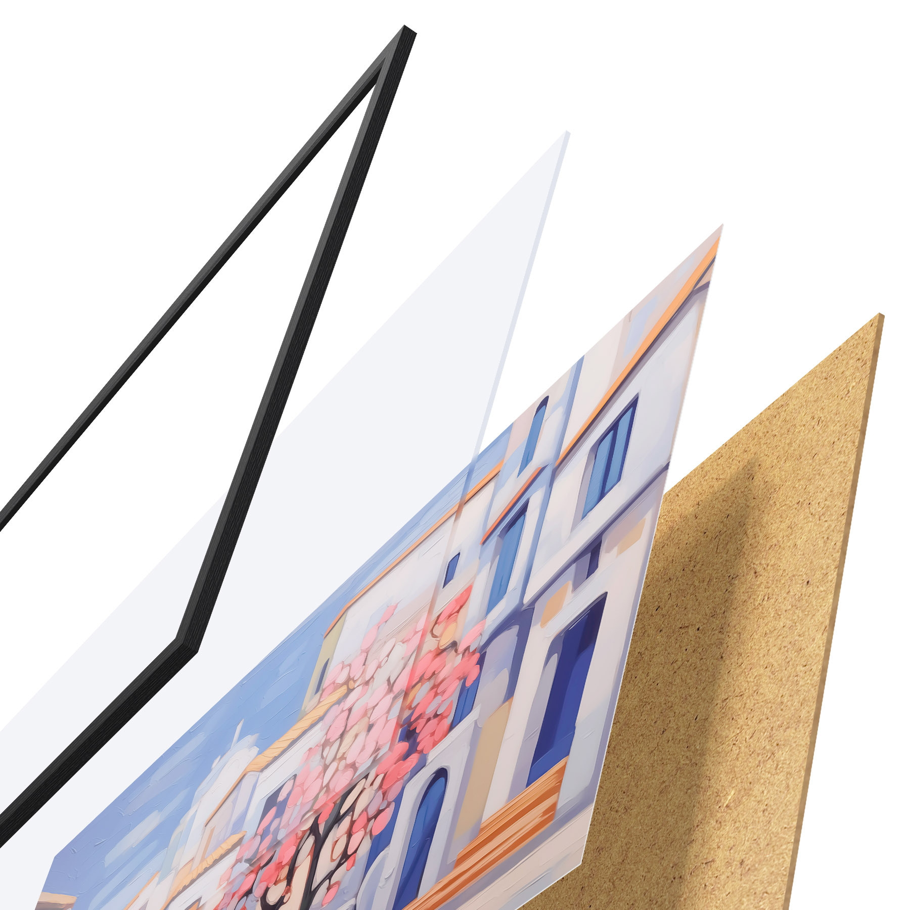 Plakatą sudaro rėmas, pleksiklas, atspausdintas vaizdas ir medžio drožlių plokštės pagrindas. Plakatą galima iš karto pakabinti ant sienos dėl kitoje pusėje esančių laikiklių.