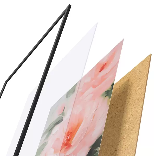 Plakatą sudaro rėmas, pleksiklas, atspausdintas vaizdas ir medžio drožlių plokštės pagrindas. Plakatą galima iš karto pakabinti ant sienos dėl kitoje pusėje esančių laikiklių.