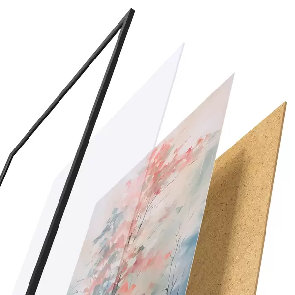 Plakatą sudaro rėmas, pleksiklas, atspausdintas vaizdas ir medžio drožlių plokštės pagrindas. Plakatą galima iš karto pakabinti ant sienos dėl kitoje pusėje esančių laikiklių.