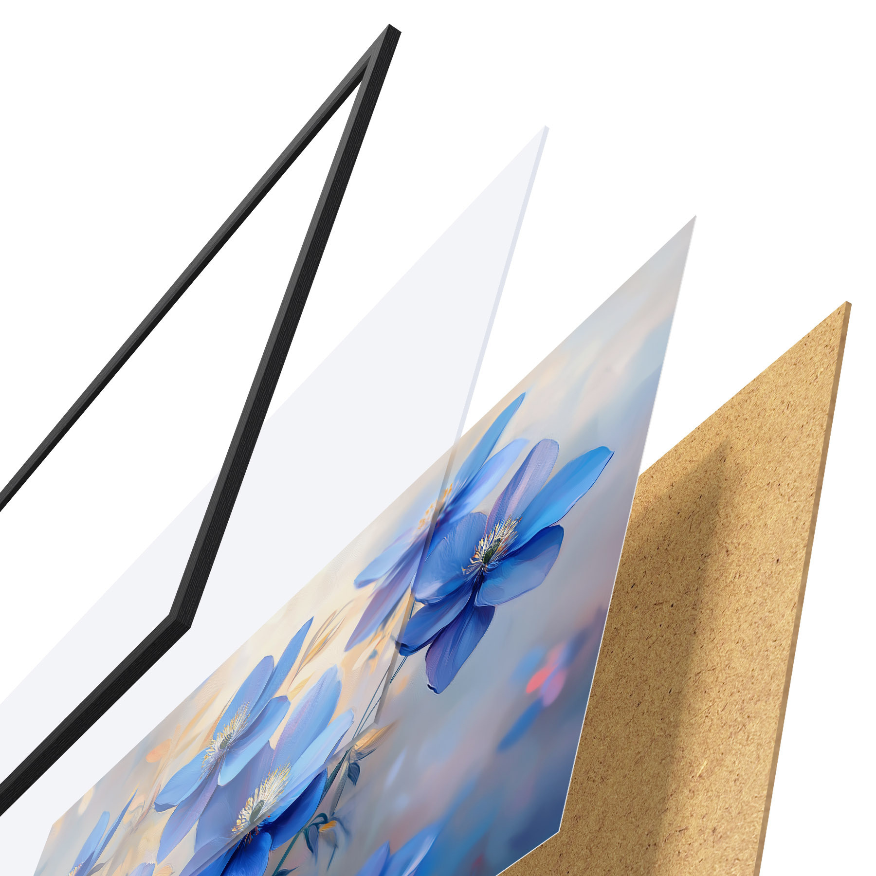 Plakatą sudaro rėmas, pleksiklas, atspausdintas vaizdas ir medžio drožlių plokštės pagrindas. Plakatą galima iš karto pakabinti ant sienos dėl kitoje pusėje esančių laikiklių.