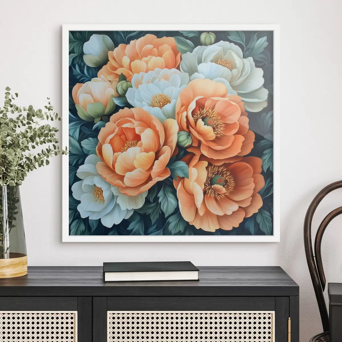 Plakatas Baltos ir oranžinės gėlės Ne f42860