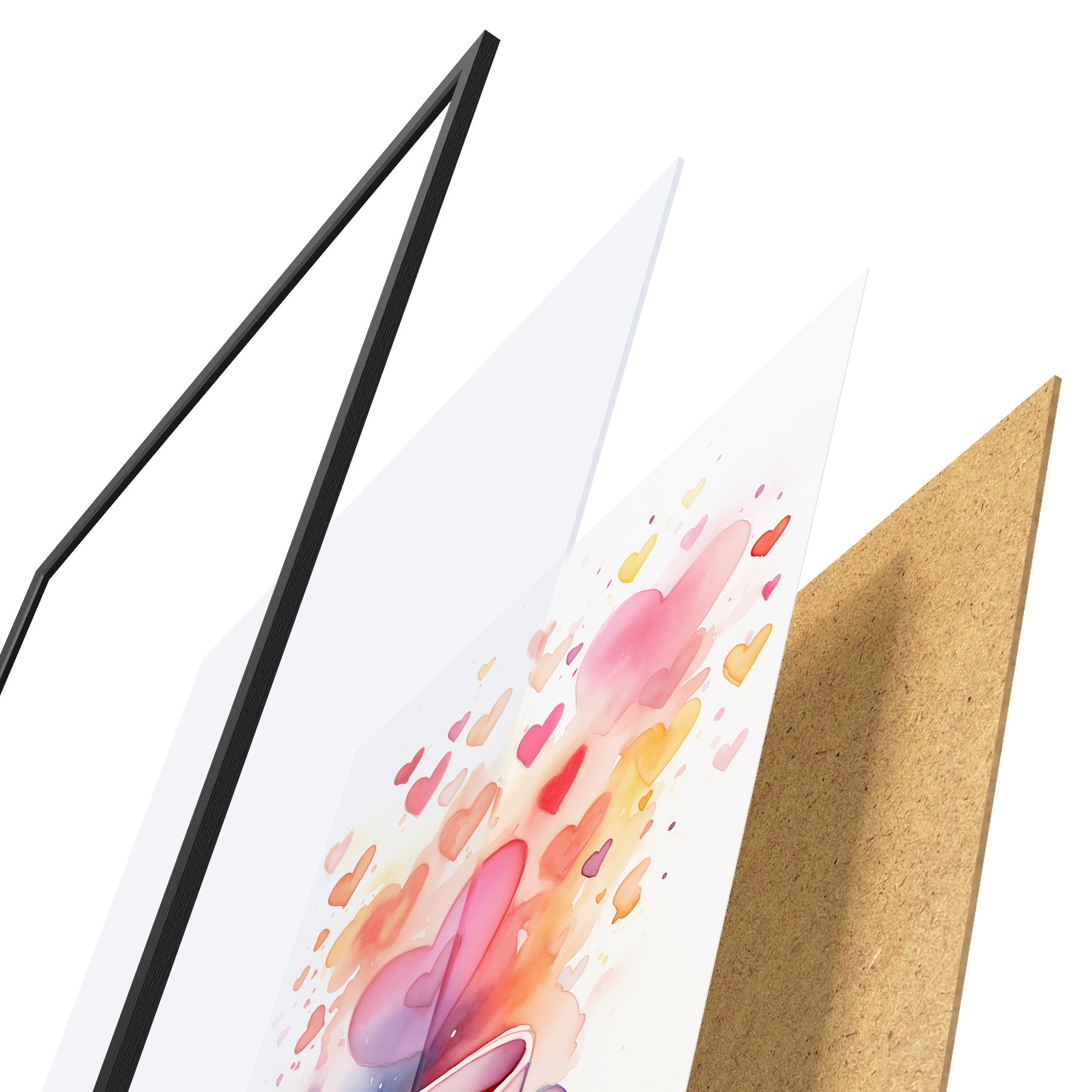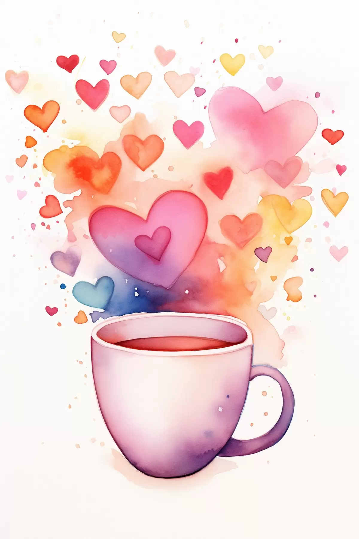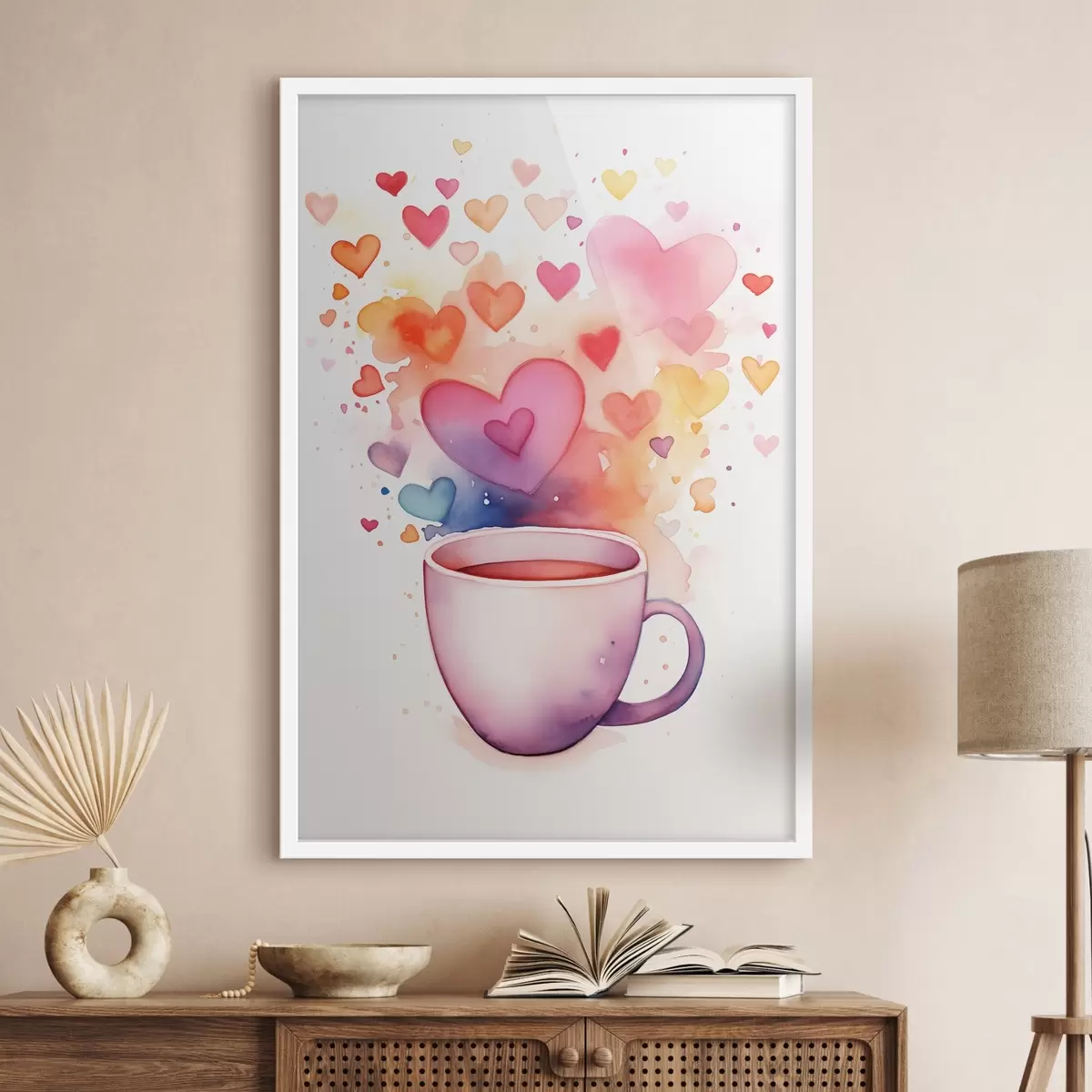 Plakatas Puodelis akvarelinių širdelių fone Ne f42869