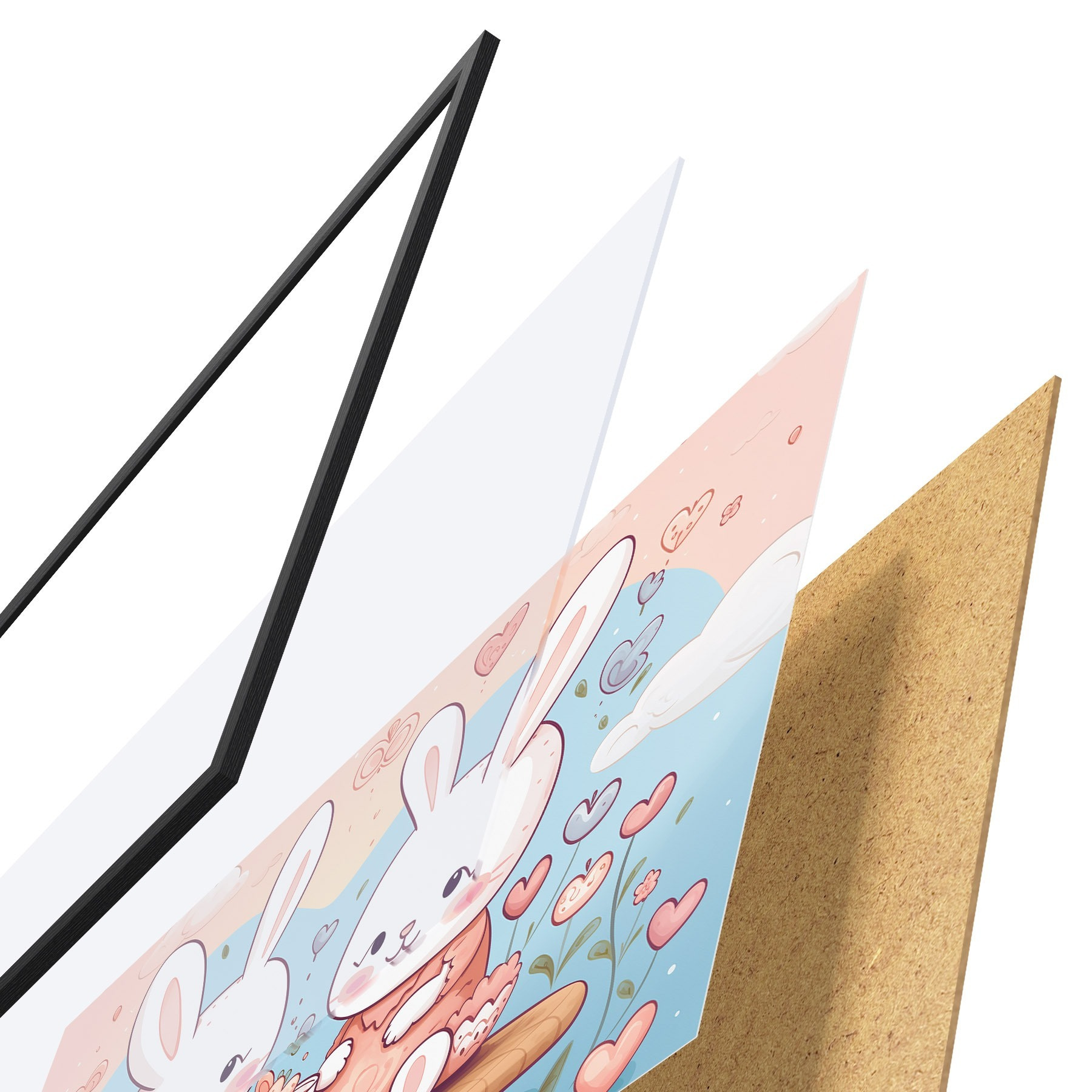 Plakatą sudaro rėmas, pleksiklas, atspausdintas vaizdas ir medžio drožlių plokštės pagrindas. Plakatą galima iš karto pakabinti ant sienos dėl kitoje pusėje esančių laikiklių.