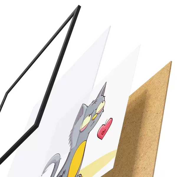 Plakatą sudaro rėmas, pleksiklas, atspausdintas vaizdas ir medžio drožlių plokštės pagrindas. Plakatą galima iš karto pakabinti ant sienos dėl kitoje pusėje esančių laikiklių.