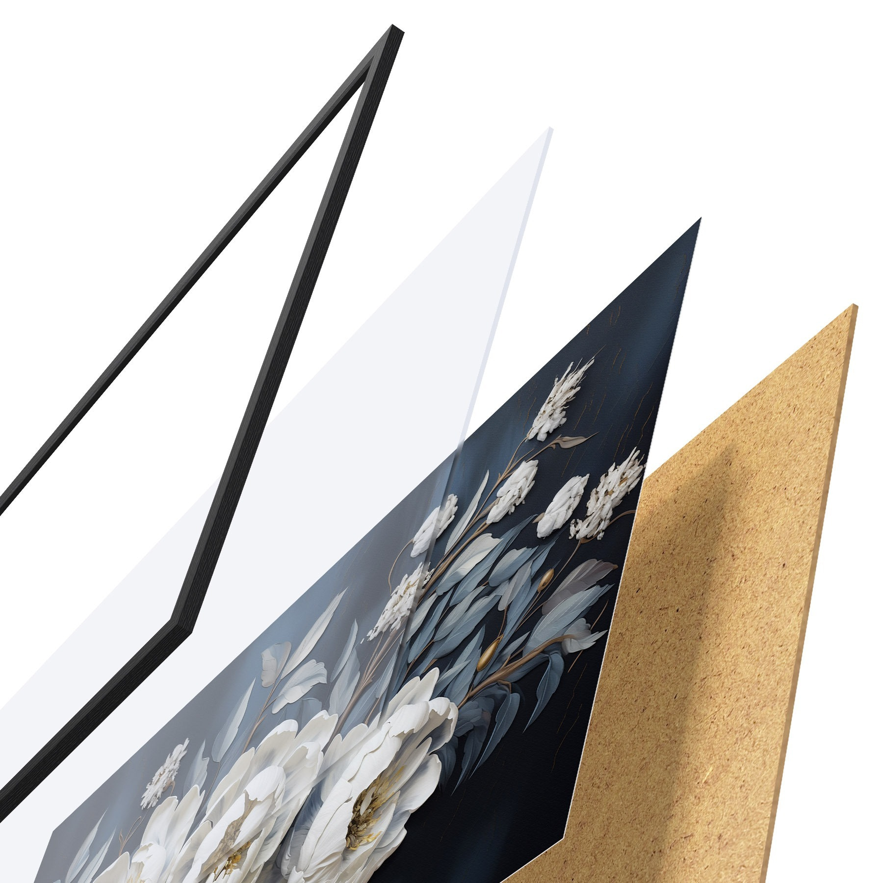 Plakatą sudaro rėmas, pleksiklas, atspausdintas vaizdas ir medžio drožlių plokštės pagrindas. Plakatą galima iš karto pakabinti ant sienos dėl kitoje pusėje esančių laikiklių.