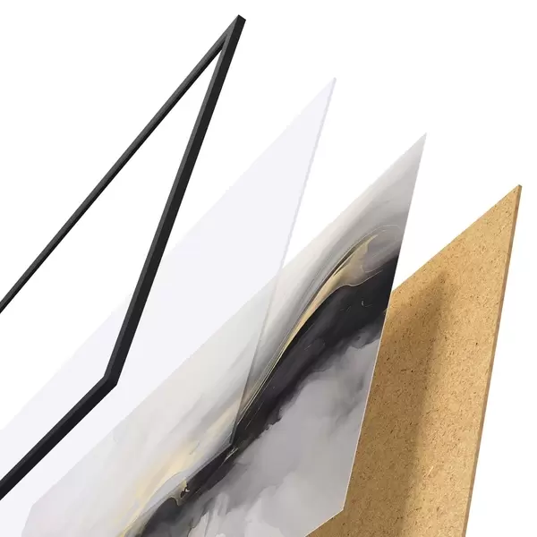 Plakatą sudaro rėmas, pleksiklas, atspausdintas vaizdas ir medžio drožlių plokštės pagrindas. Plakatą galima iš karto pakabinti ant sienos dėl kitoje pusėje esančių laikiklių.