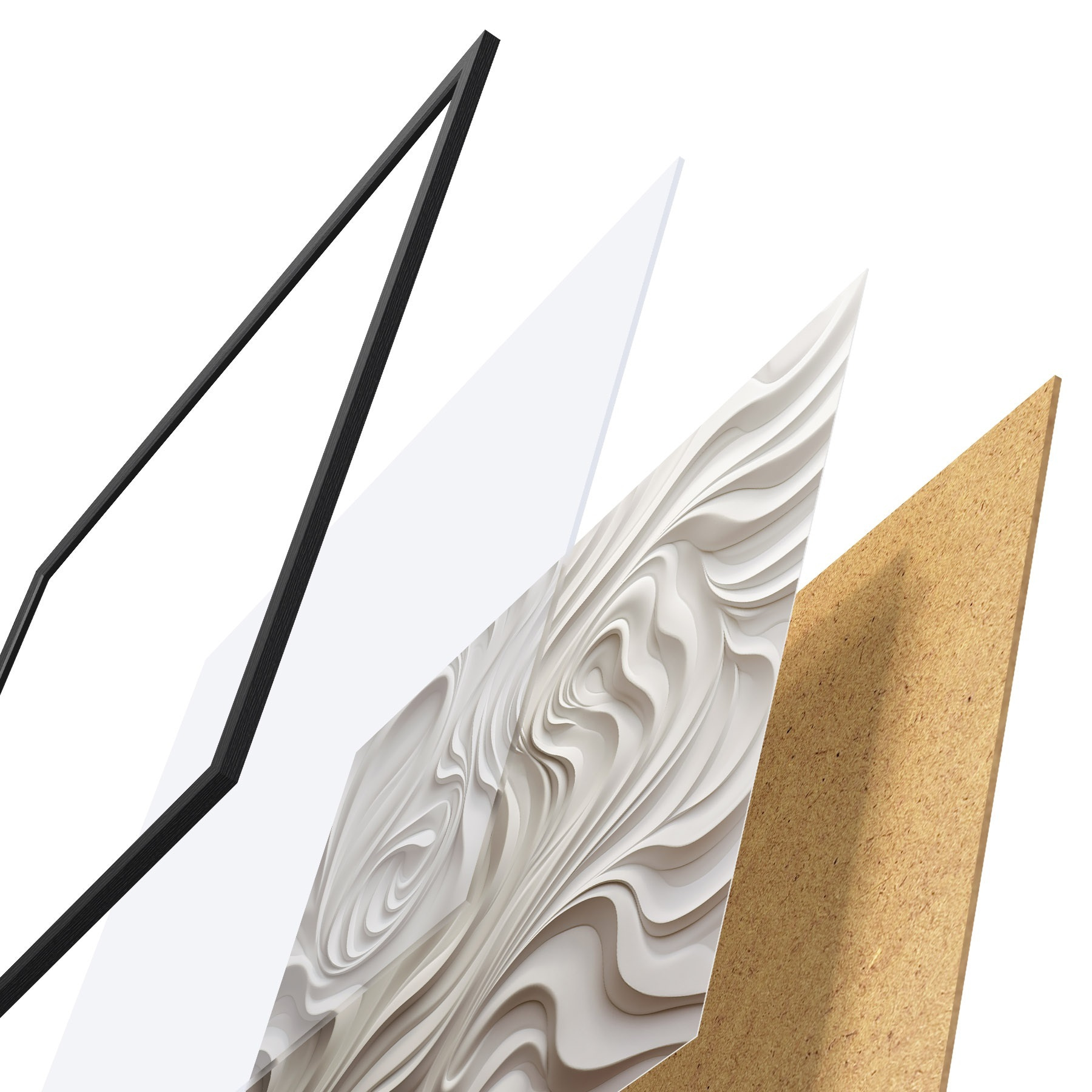 Plakatą sudaro rėmas, pleksiklas, atspausdintas vaizdas ir medžio drožlių plokštės pagrindas. Plakatą galima iš karto pakabinti ant sienos dėl kitoje pusėje esančių laikiklių.