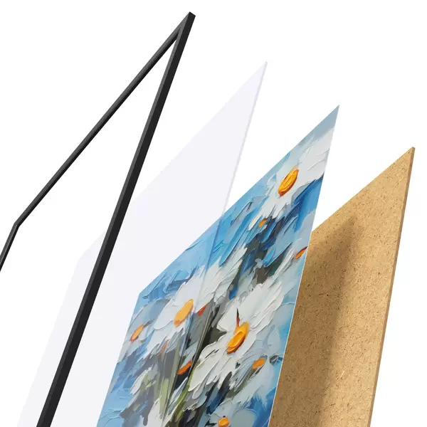 Plakatą sudaro rėmas, pleksiklas, atspausdintas vaizdas ir medžio drožlių plokštės pagrindas. Plakatą galima iš karto pakabinti ant sienos dėl kitoje pusėje esančių laikiklių.