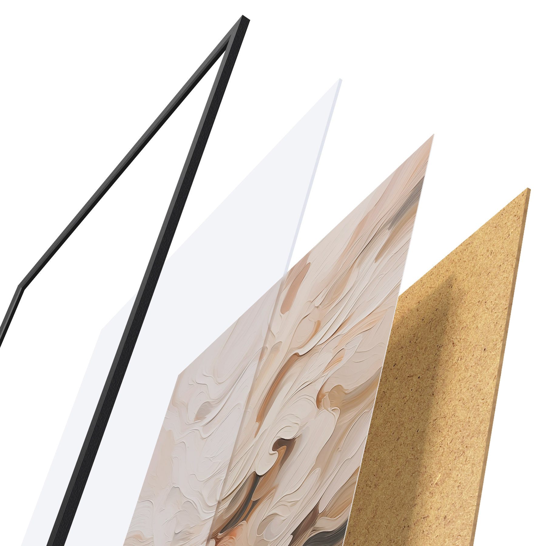 Plakatą sudaro rėmas, pleksiklas, atspausdintas vaizdas ir medžio drožlių plokštės pagrindas. Plakatą galima iš karto pakabinti ant sienos dėl kitoje pusėje esančių laikiklių.
