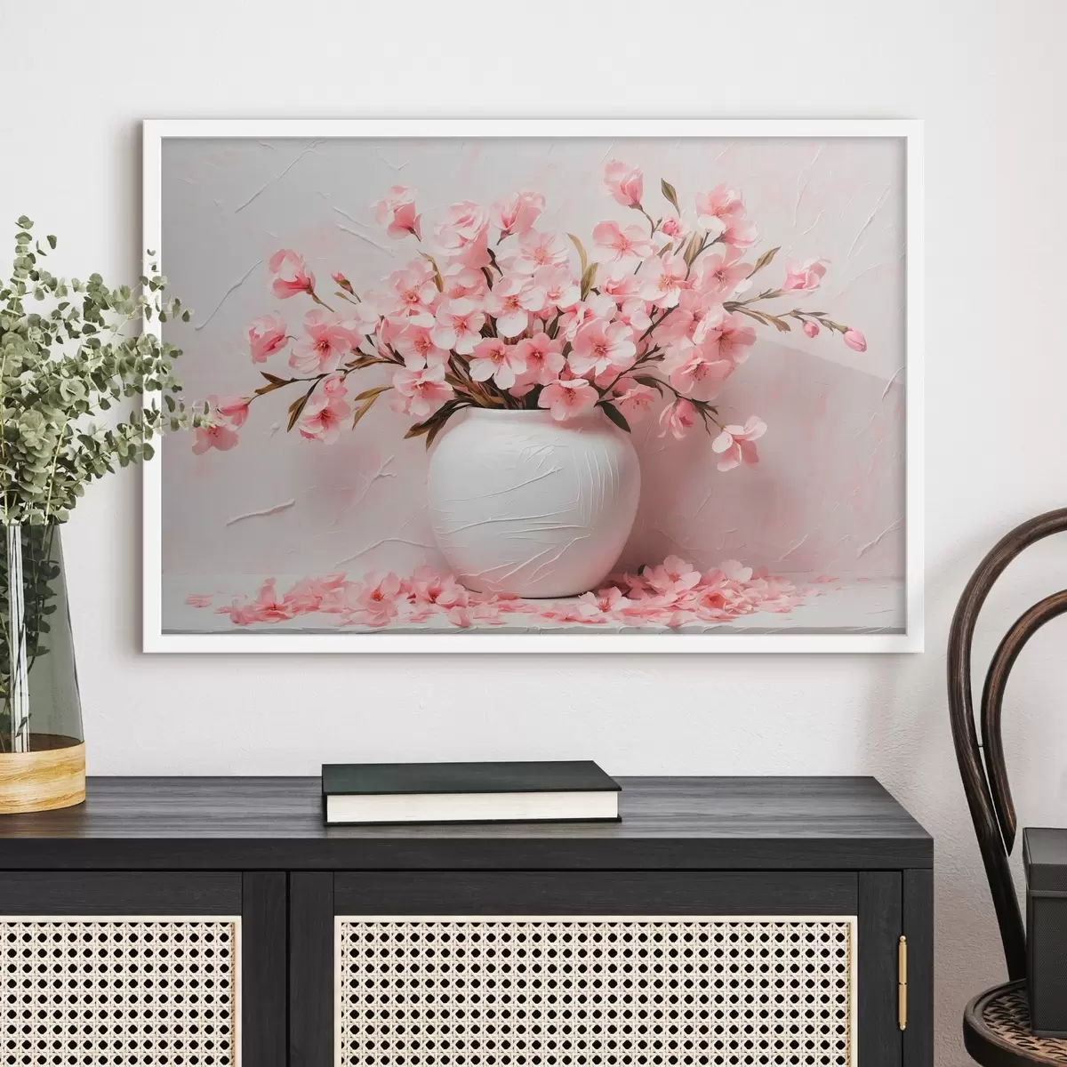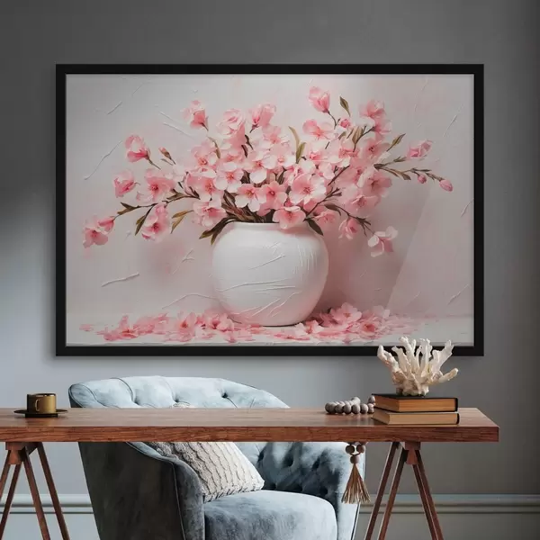 Plakatas Rožinis žiedas baltoje vaflinėje dėžutėje f42915