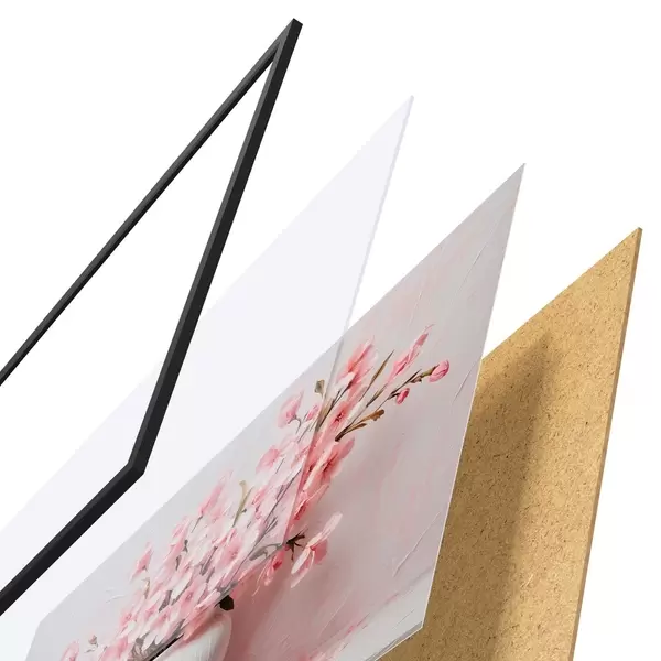 Plakatą sudaro rėmas, pleksiklas, atspausdintas vaizdas ir medžio drožlių plokštės pagrindas. Plakatą galima iš karto pakabinti ant sienos dėl kitoje pusėje esančių laikiklių.