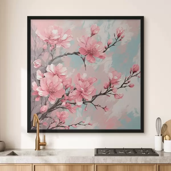 Plakatas Pink floweff ir ftemf akfiliško tapymo stiliumi f42918