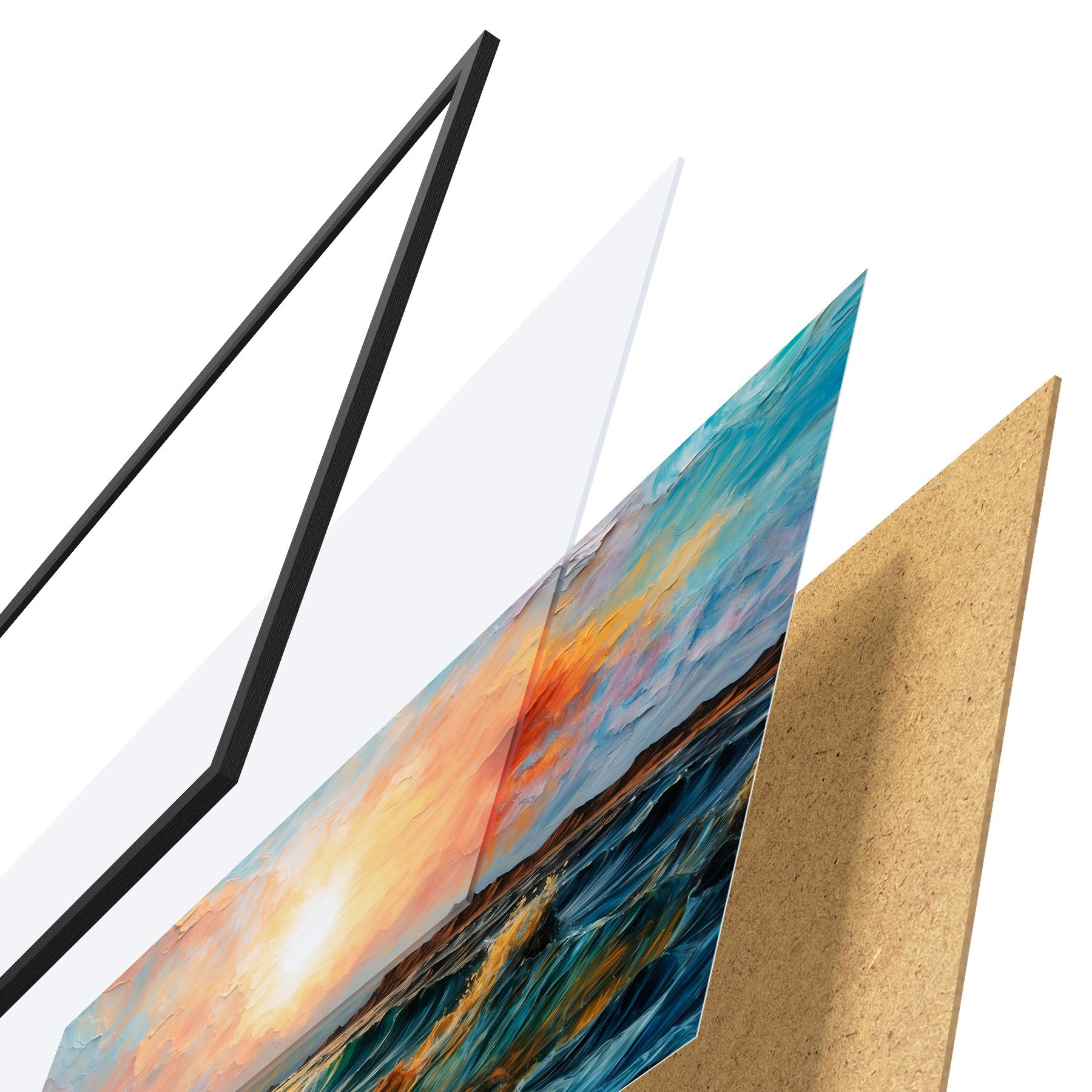 Plakatą sudaro rėmas, pleksiklas, atspausdintas vaizdas ir medžio drožlių plokštės pagrindas. Plakatą galima iš karto pakabinti ant sienos dėl kitoje pusėje esančių laikiklių.