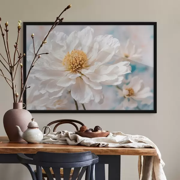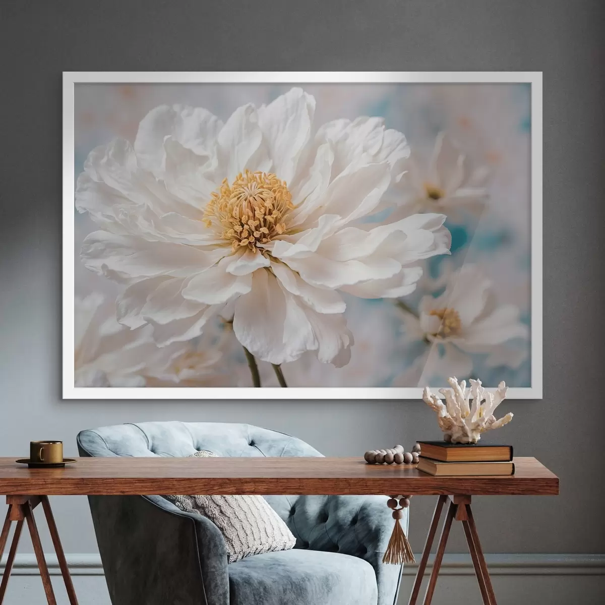 Plakatas Baltos spalvos flowef ant nugaros su mėlynėmis rastas f42925