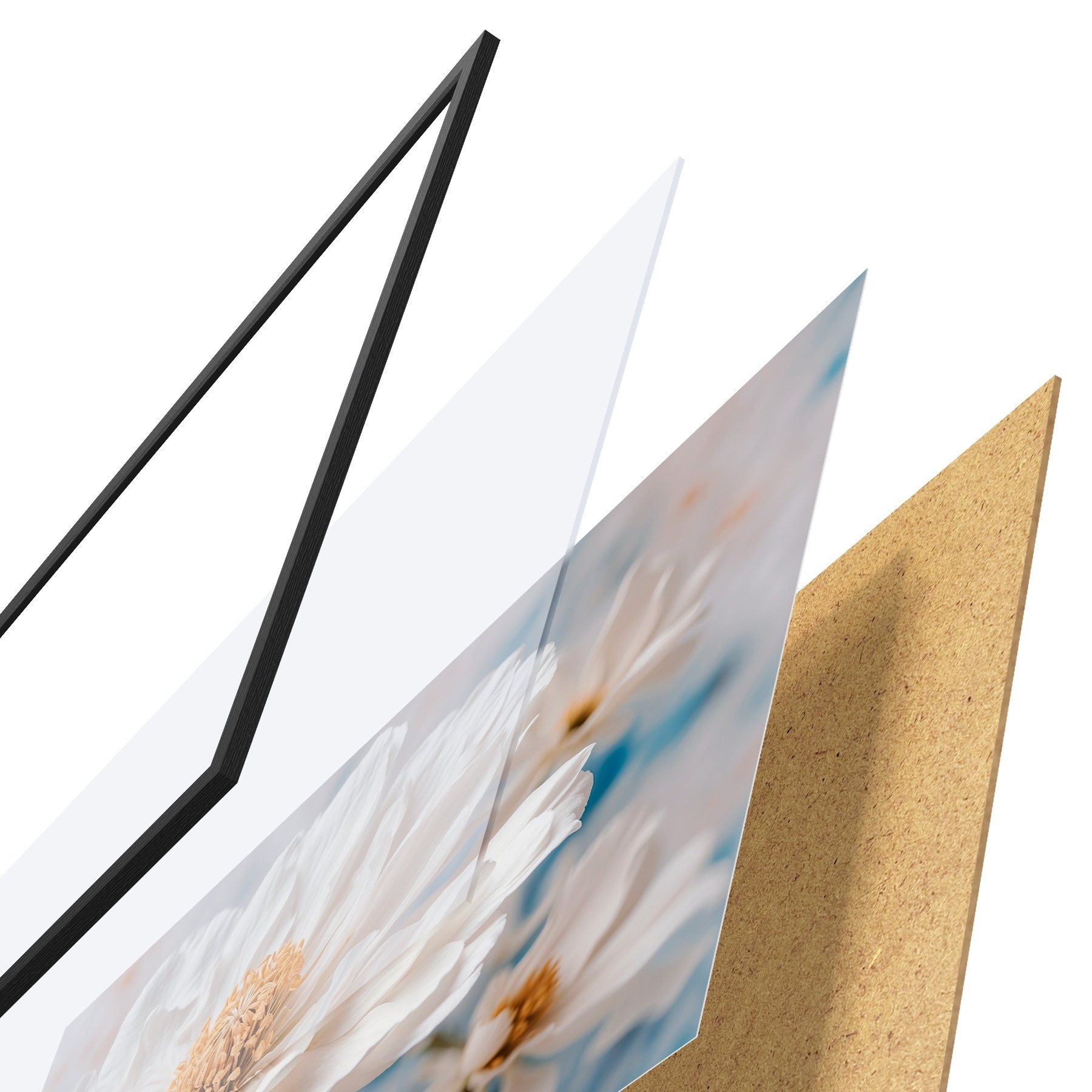 Plakatą sudaro rėmas, pleksiklas, atspausdintas vaizdas ir medžio drožlių plokštės pagrindas. Plakatą galima iš karto pakabinti ant sienos dėl kitoje pusėje esančių laikiklių.
