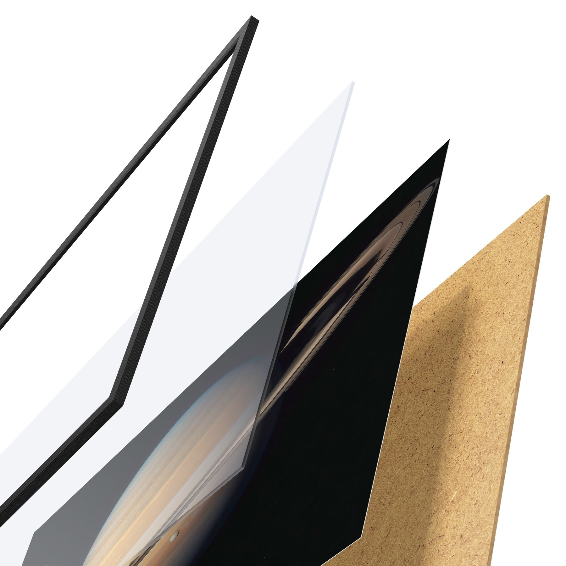 Plakatą sudaro rėmas, pleksiklas, atspausdintas vaizdas ir medžio drožlių plokštės pagrindas. Plakatą galima iš karto pakabinti ant sienos dėl kitoje pusėje esančių laikiklių.