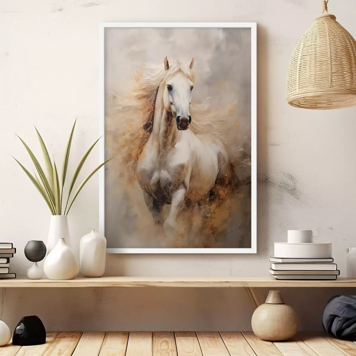 Plakatas Vaizdingas judančio balto žirgo portretas f42932