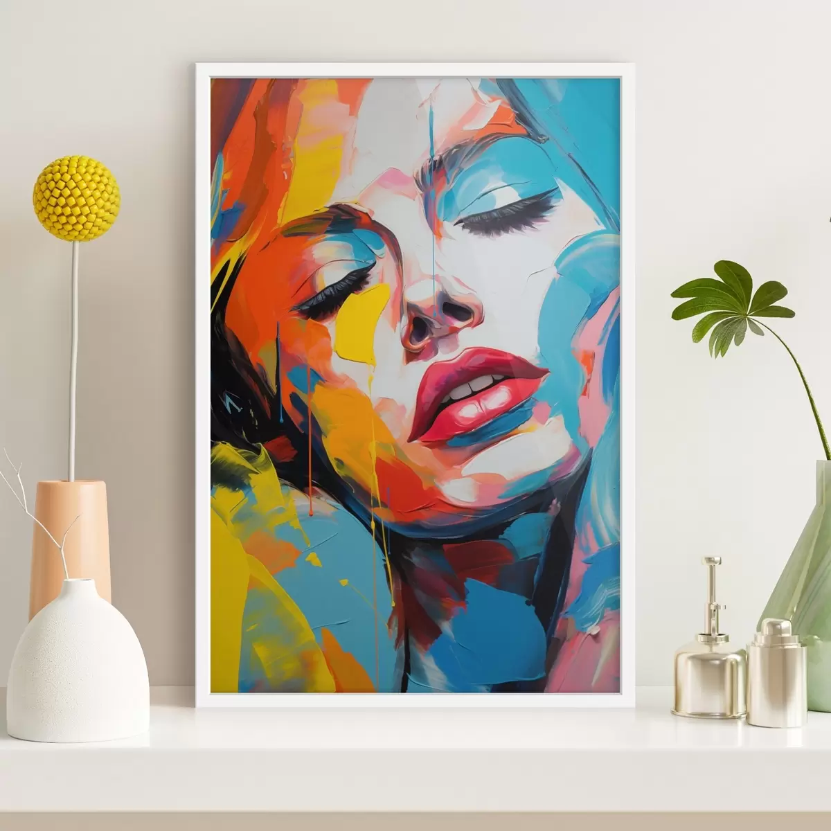 Plakatas Išraiškingų spalvų abstraktus moters portretas f42935