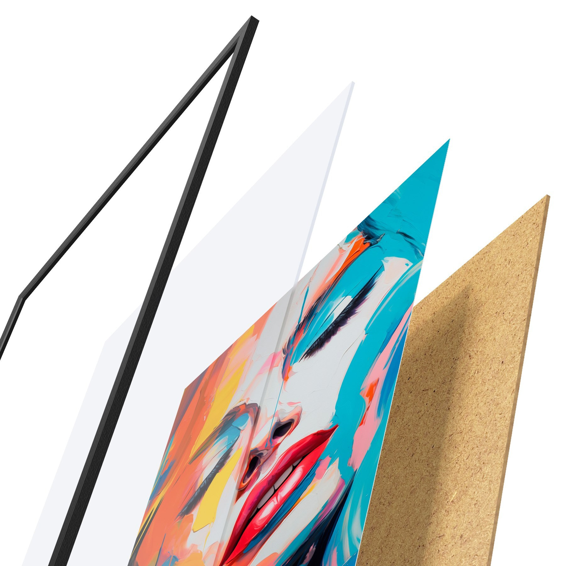 Plakatą sudaro rėmas, pleksiklas, atspausdintas vaizdas ir medžio drožlių plokštės pagrindas. Plakatą galima iš karto pakabinti ant sienos dėl kitoje pusėje esančių laikiklių.